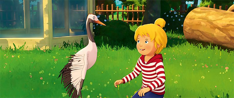 Mama und Papa sollten also lieber ausgeruht sein, wenn sie den Kurzen jenen Spaß gönnen wollen. Und ja, die kleinen Menschen werden ihre – phasenweise wirklich helle – Freude dran haben. Weil Conni tut, was sie bereits seit Jahrzehnten am besten kann, nämlich Alltag zum Abenteuerspielplatz umgestalten, zur großen Wohlfühlwattewolke, die zum Reinkuscheln verlockt. Wie der Titel ungeniert verrät, geht’s diesmal um einen jungen Kranich namens Klaus (natürlich!), in Nachbar Oswalds Garten bruchgelandet, was den Rosenliebhaber angesichts zerstörter Blütenpracht in Jagdstimmung versetzt. Weiterhin würde eine eigentlich recht possierliche Füchsin den Vogel gern auf ihren Speiseplan setzen, und schlußendlich gehört Klaus noch möglichst schnell geheilt, weil seine Artgenossen eben gen Süden ziehen. Conni, Anna und Simon haben folglich alle Hände voll zu tun!
